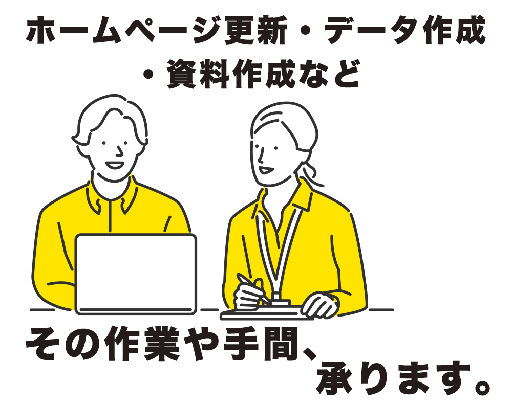 ホームページデータの作成・登録や営業支援の資料作成などを承ります!